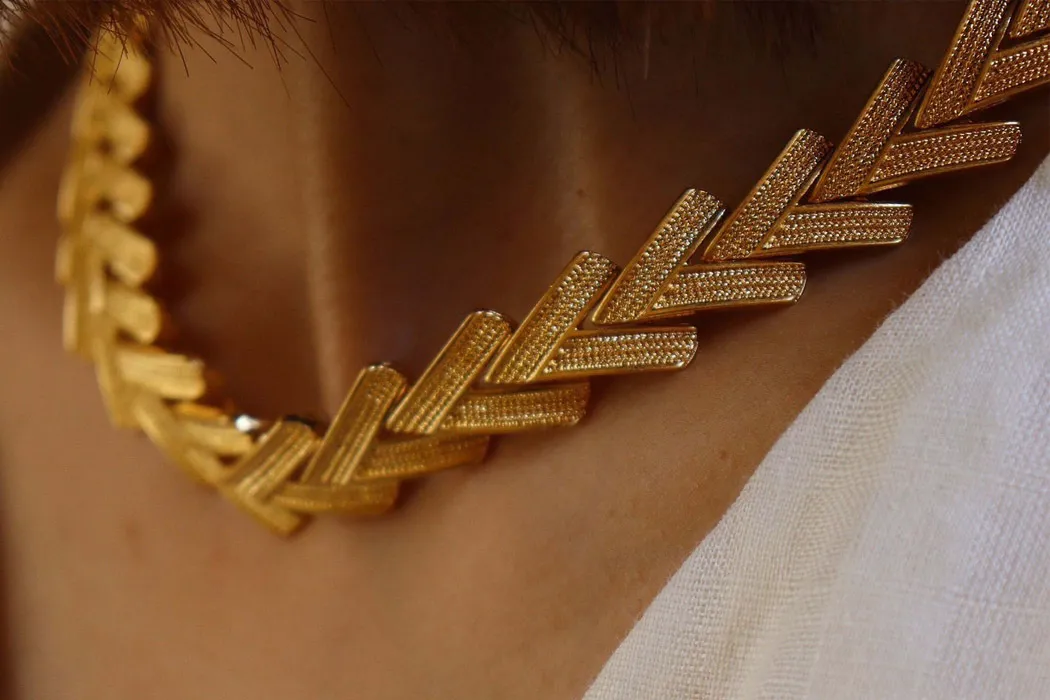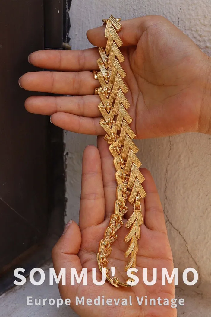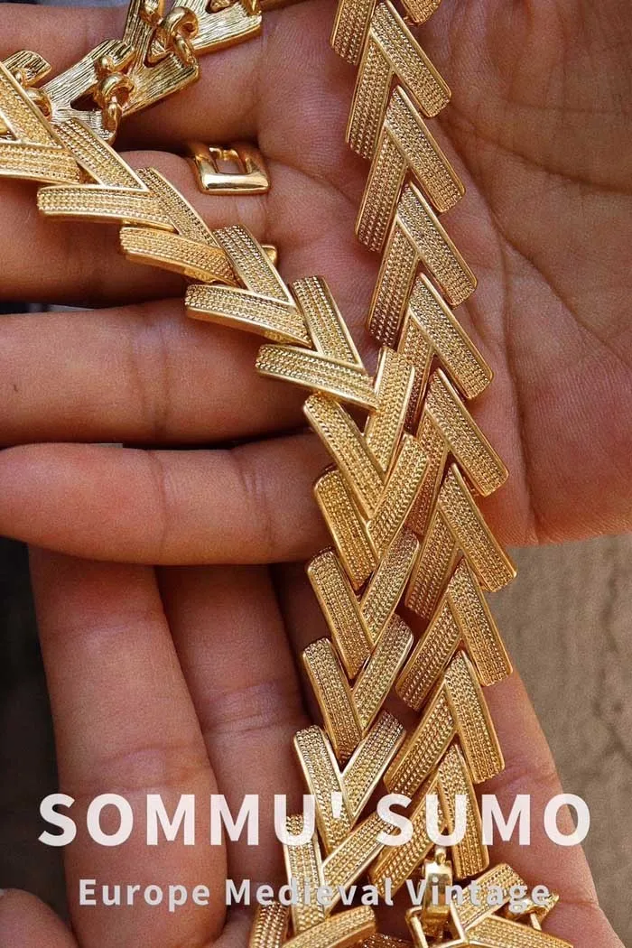 vintage 古物老件飾品-V型重工復古素金頸鍊重工設計,復古不失艷麗的設計簡單一件素T搭配,莊重又大方