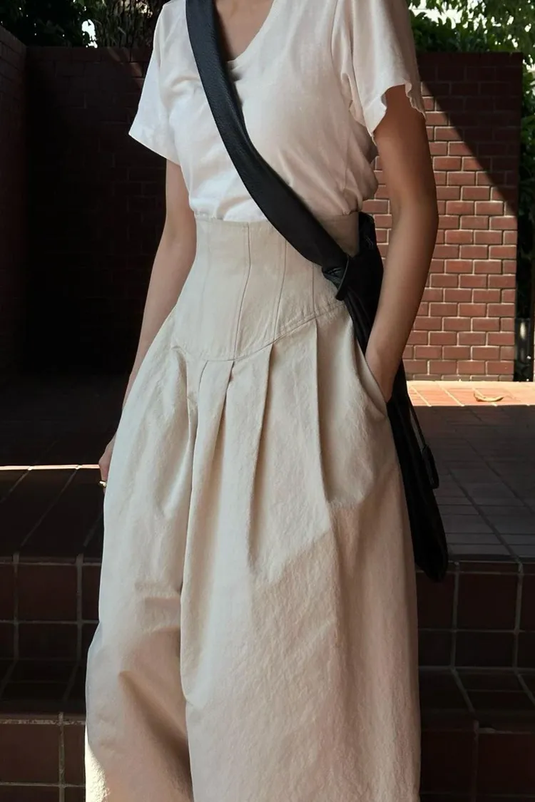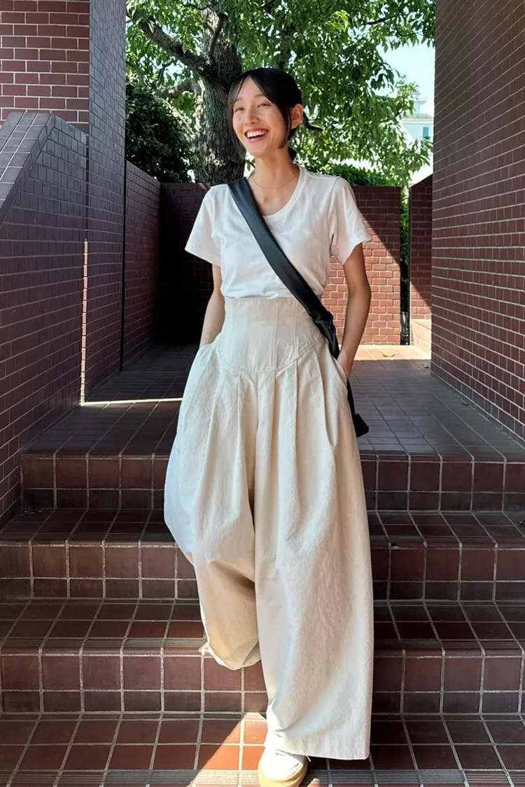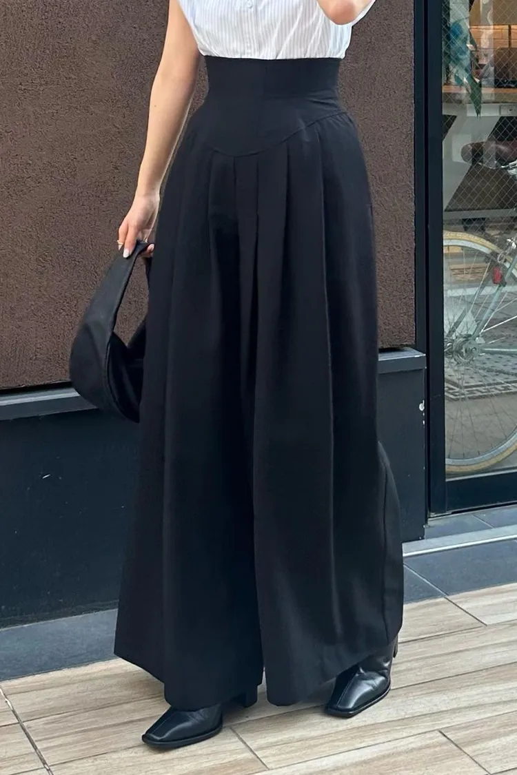 6月新品預購-日系中高腰設計款闊腿裙褲
