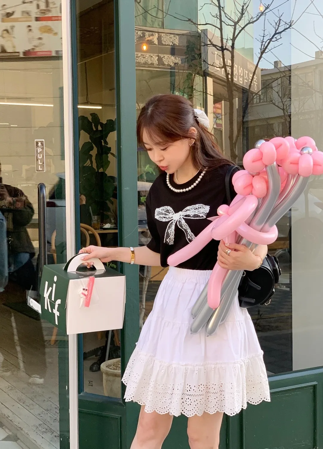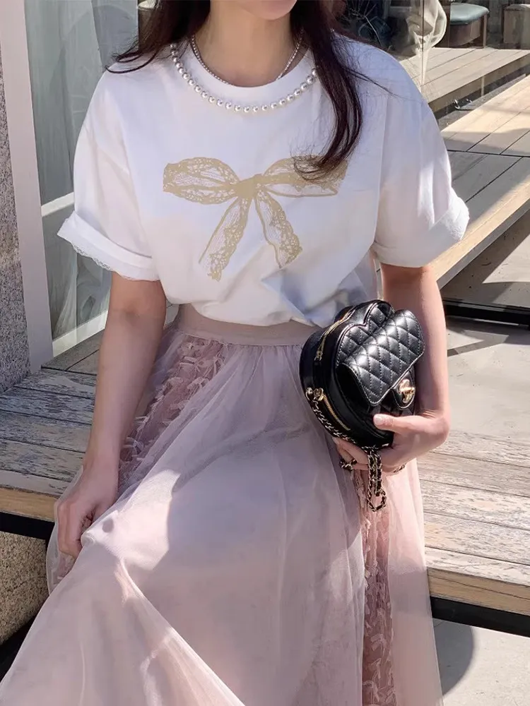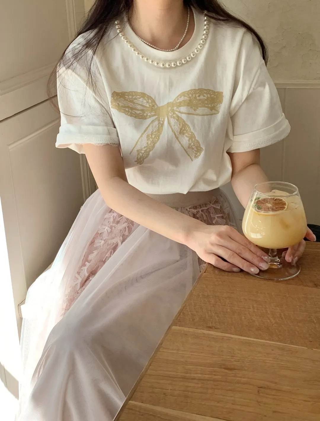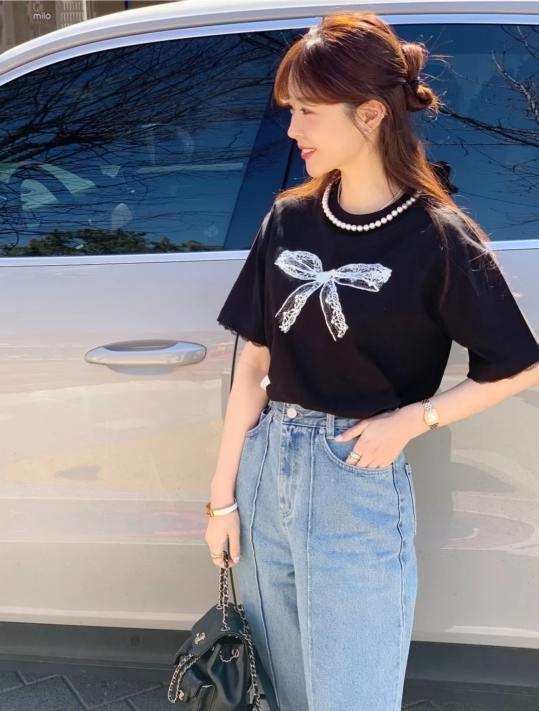 〰️ 〰️ 〰️ 〰️ 〰️ 〰️ 〰️ 〰️ 〰️ 〰️ 〰️ 〰️ 〰️ 〰️ 〰️6月新品預購-韓國蕾絲印刷蝴蝶結珍珠圓領T〰️ 〰️ 〰️ 〰️ 〰️ 〰️ 〰️ 〰️ 〰️ 〰️ 〰️ 〰️ 〰️ 〰️ 〰️◾ ◾ ◾ 商品資訊◾ ◾ ◾ 顏色:白色、灰色、黑色-------------------------------------------尺寸皆手工測量,誤差值1-3cm 為正常範圍-------------------------------------------