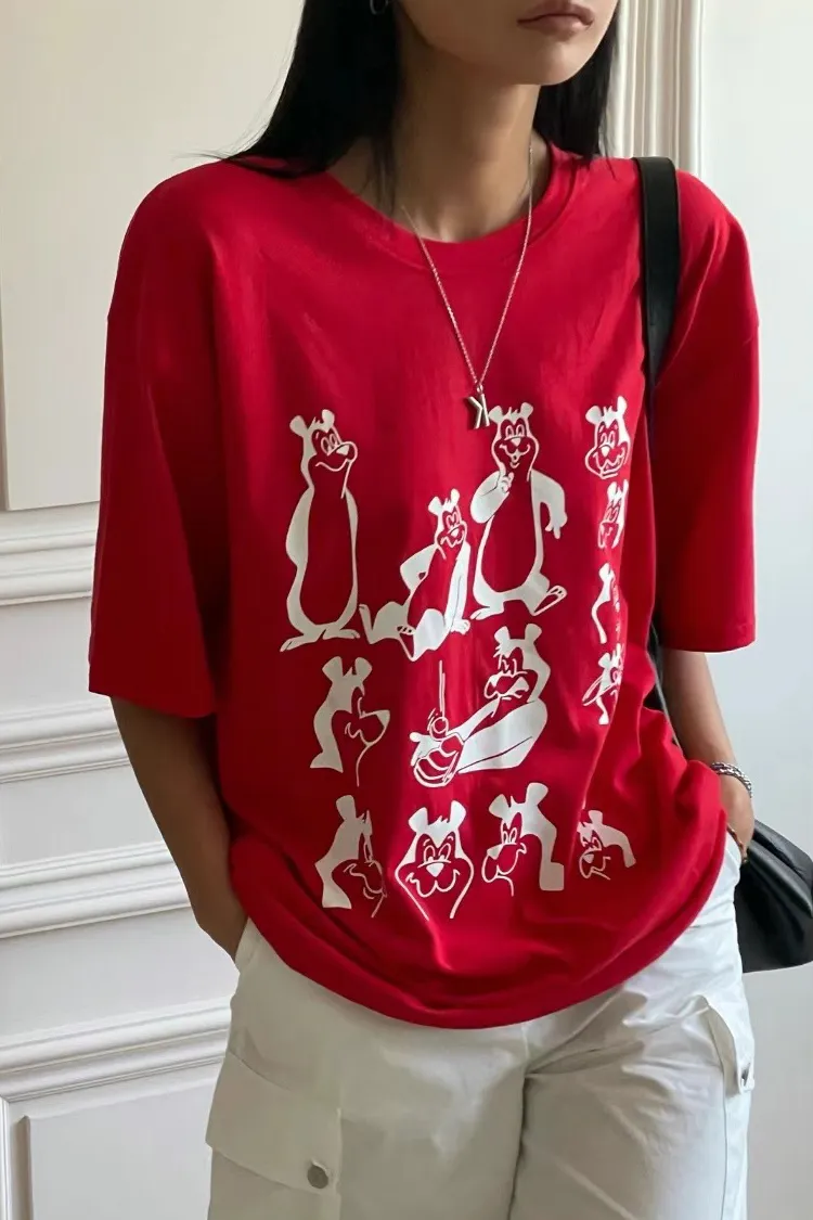 大熊熊塗鴉寬鬆慵懶感大T(全3色)