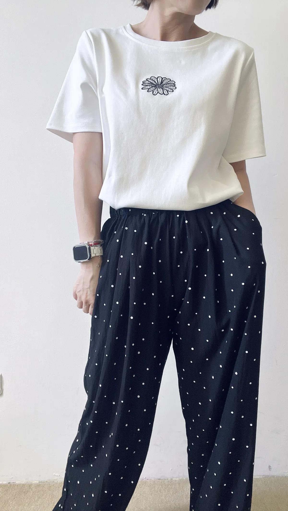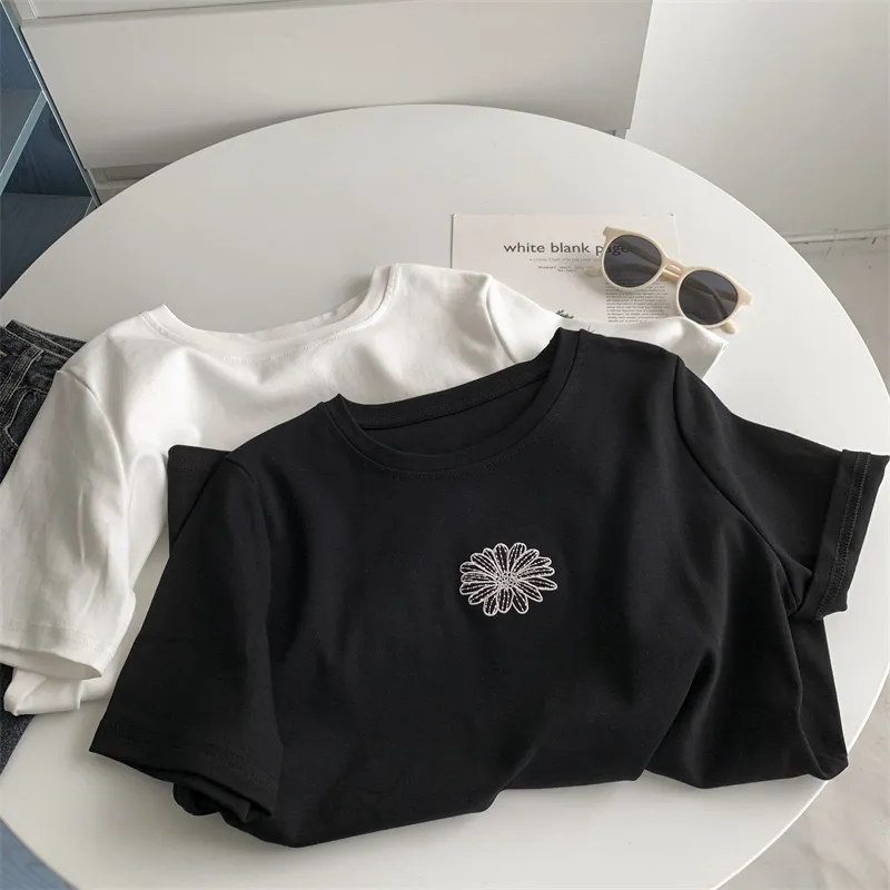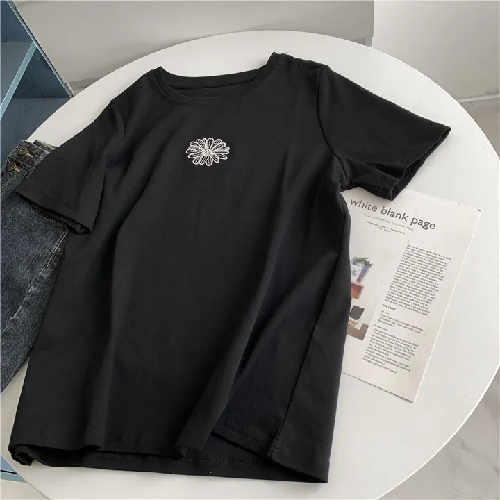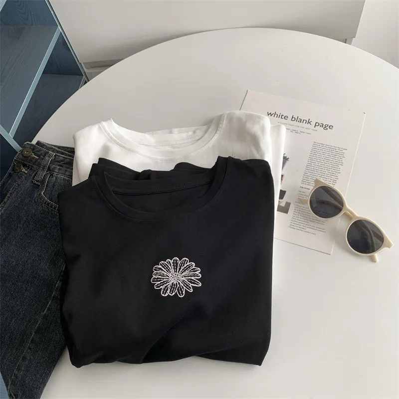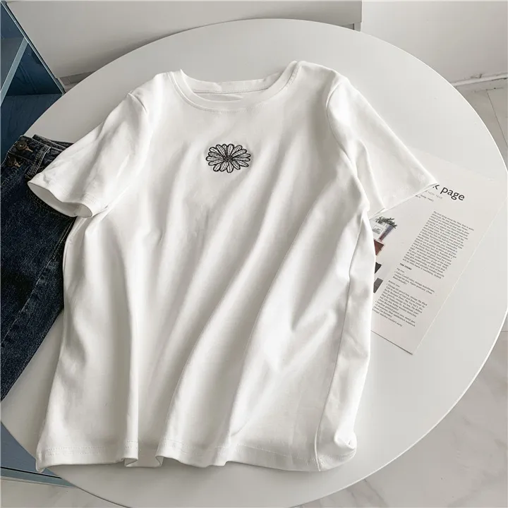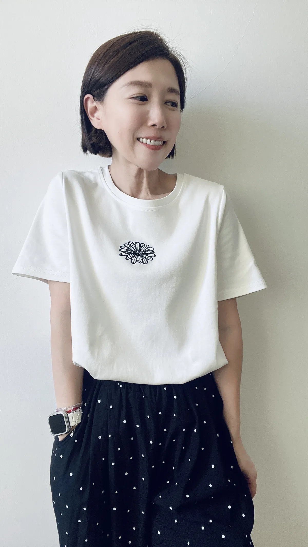 6月新品預購-法式刺繡小雛菊簡約圓領T恤