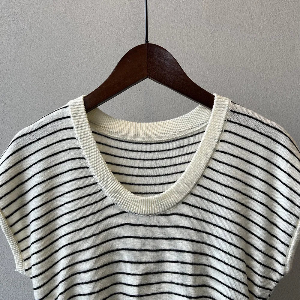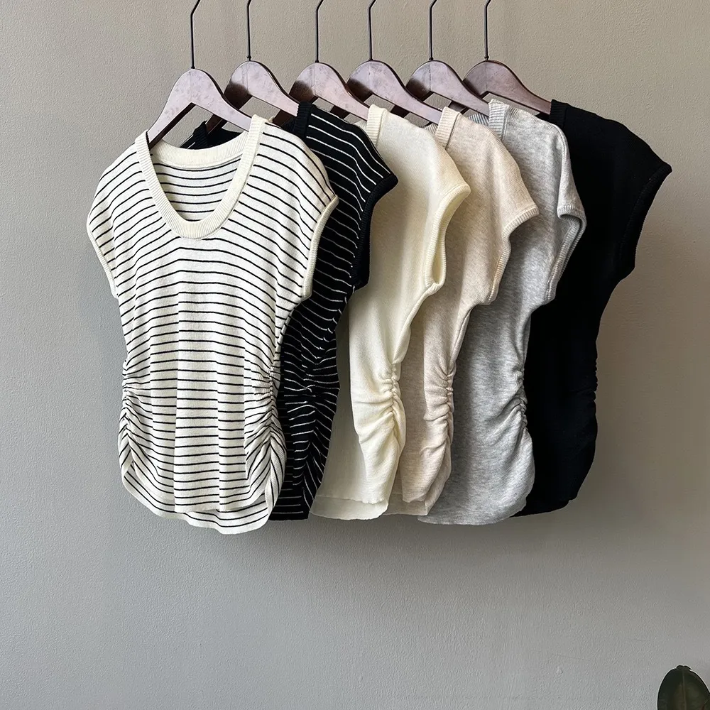 6月新品預購-夏日大U領修身顯瘦針織上衣
