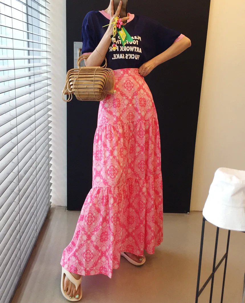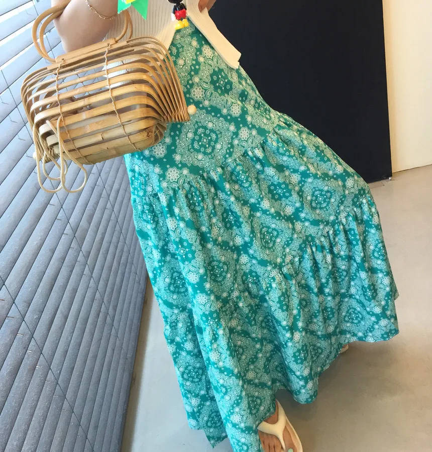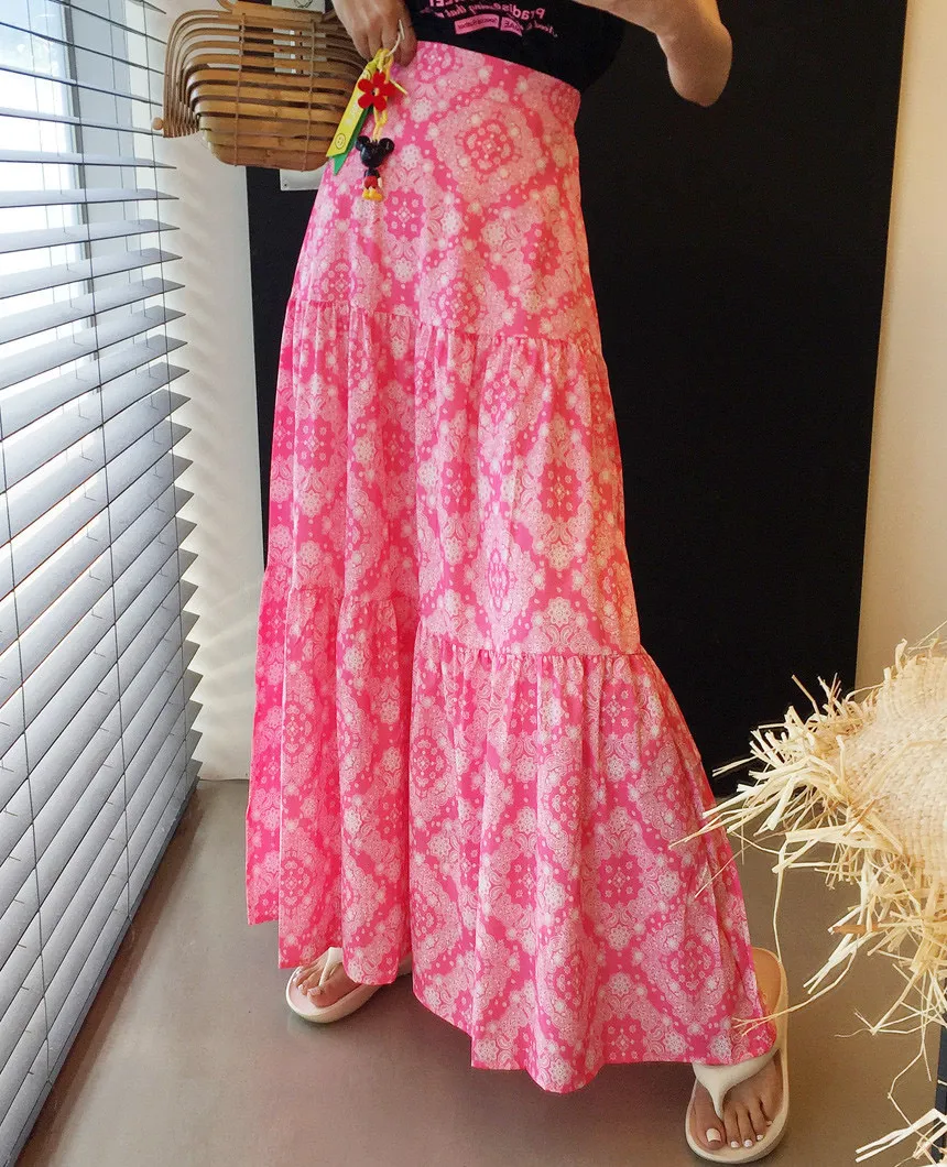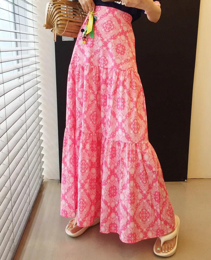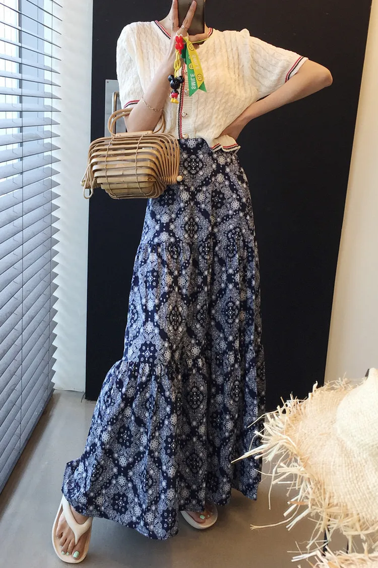 6月新品預購-渡假風圖騰魚尾長裙