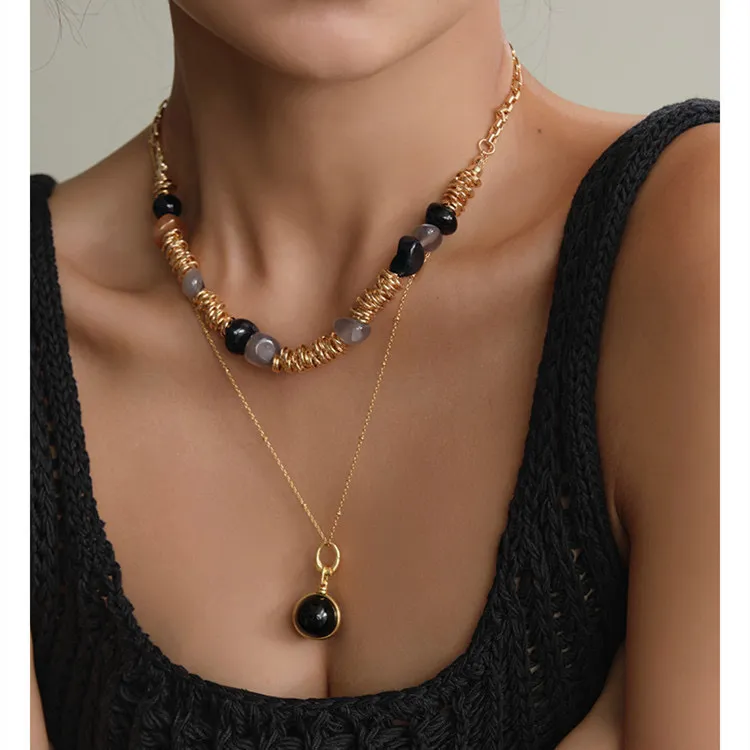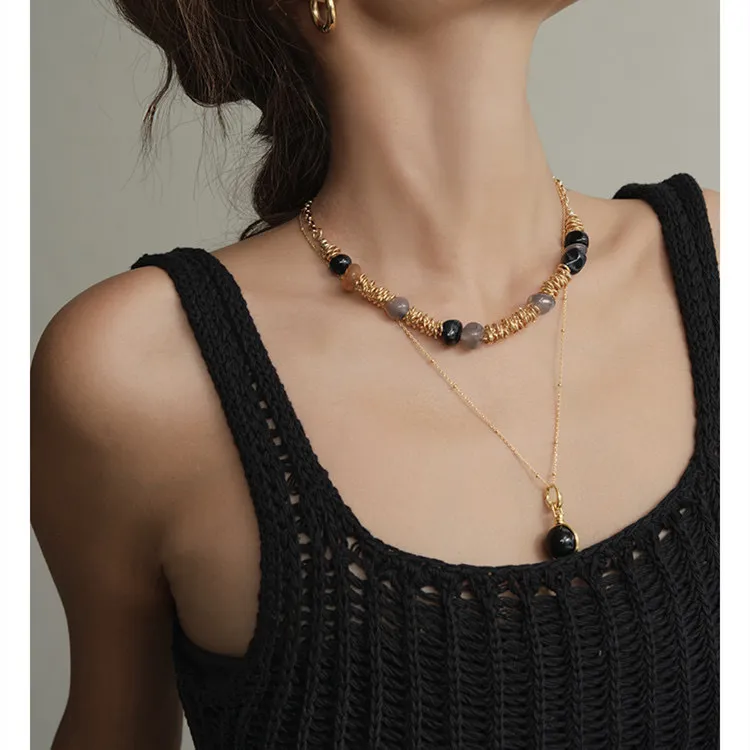 1瑪瑙石金屬串珠項鍊