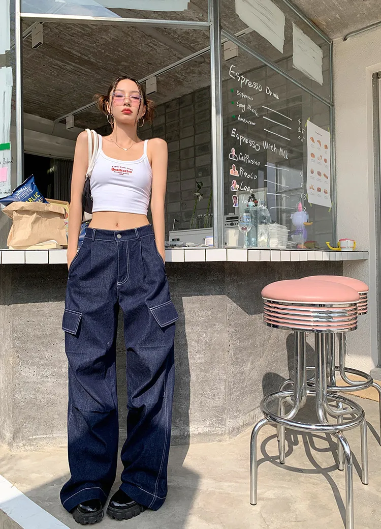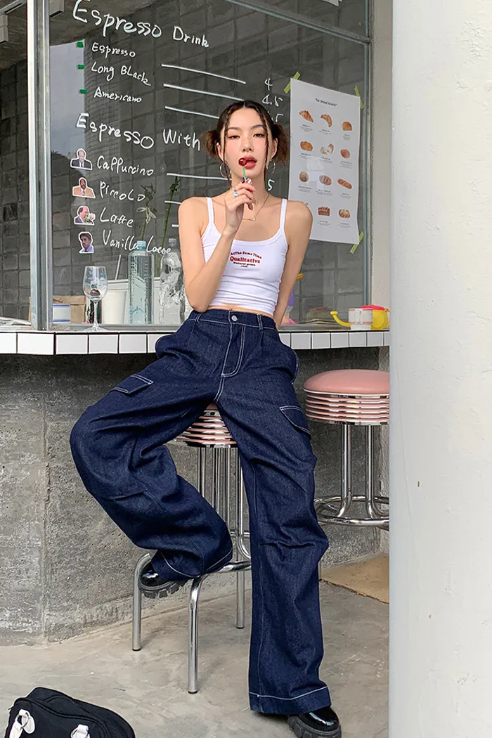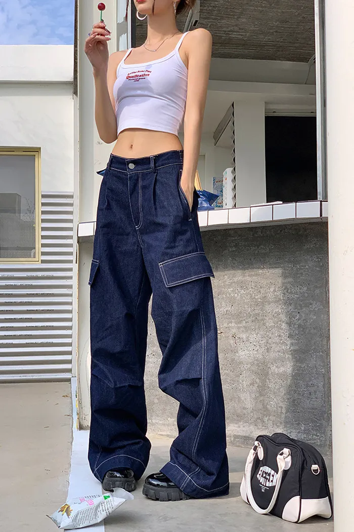 9月新品預購-深藍復古大口袋牛仔褲