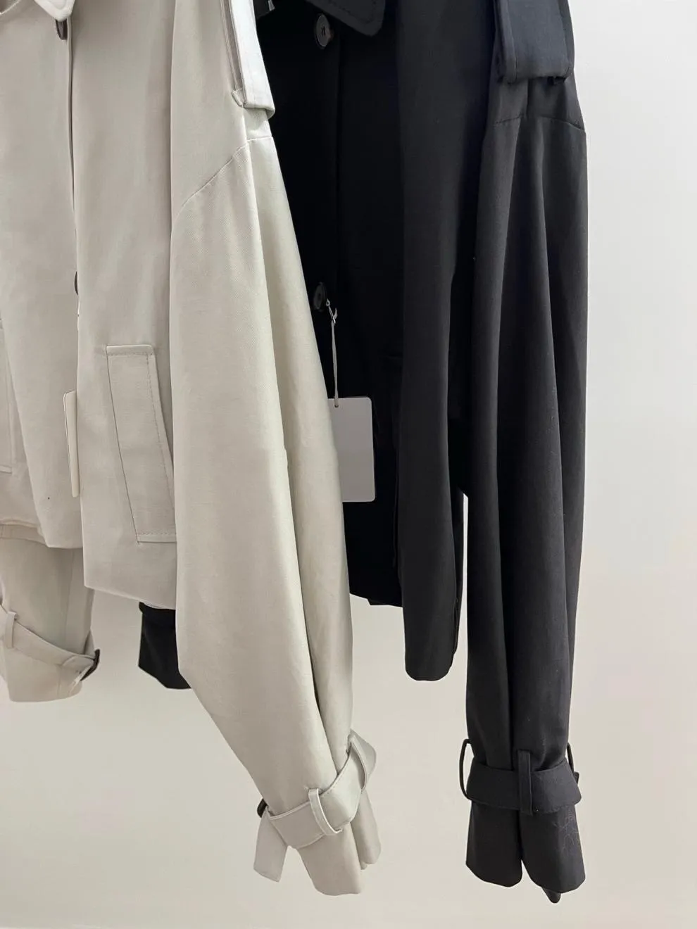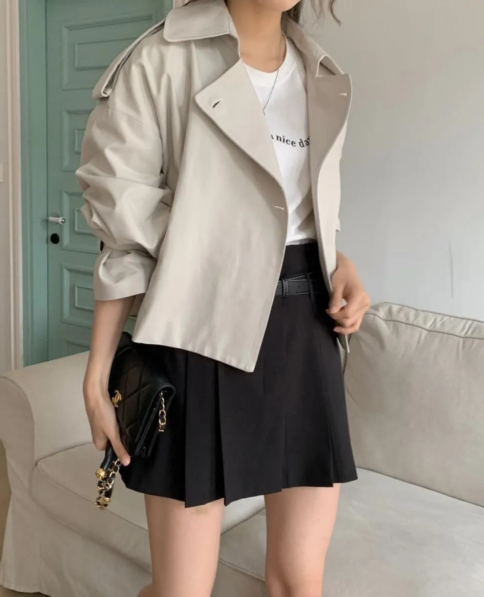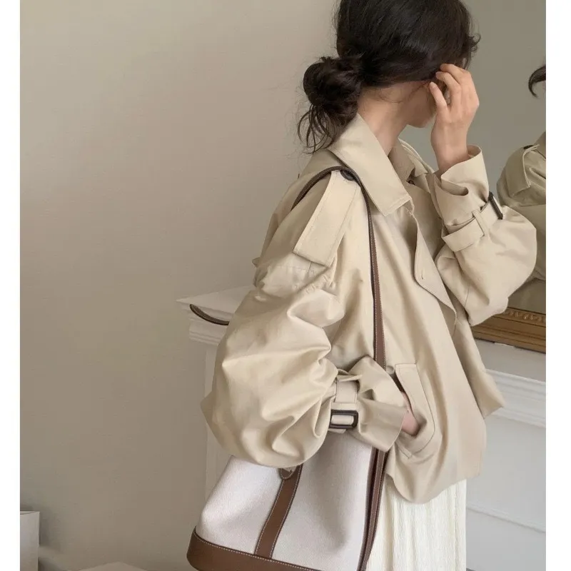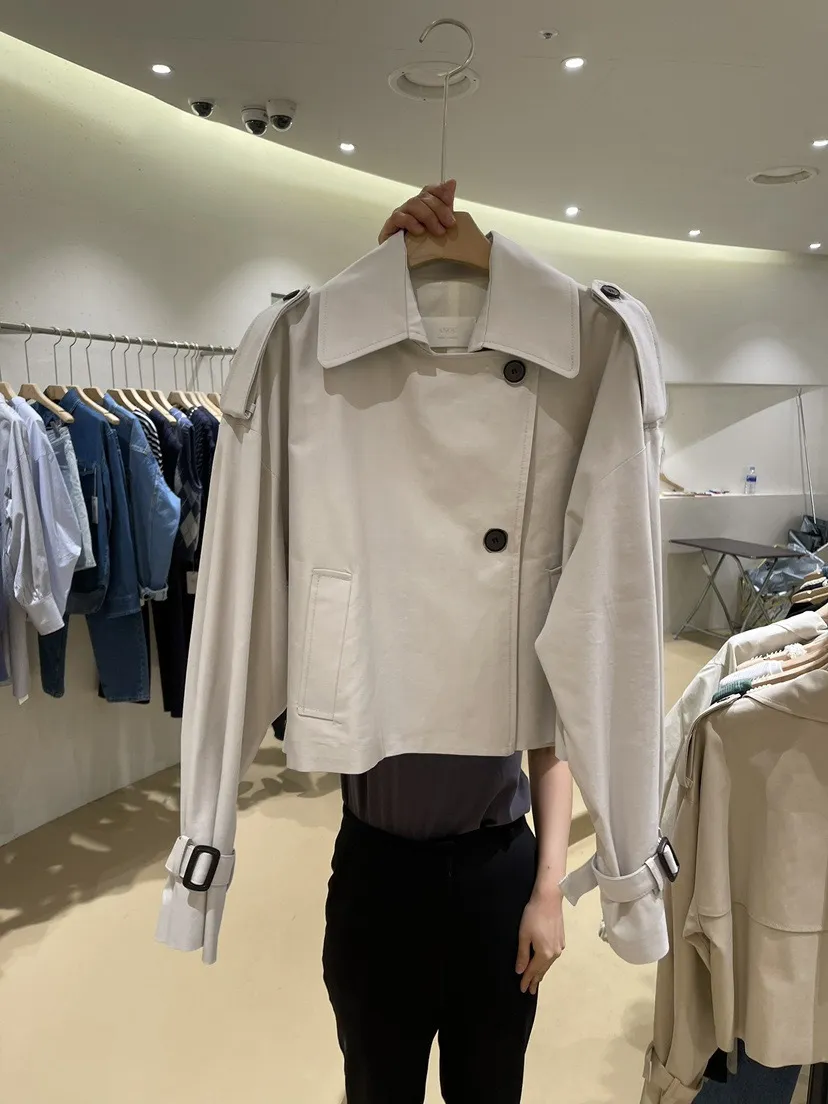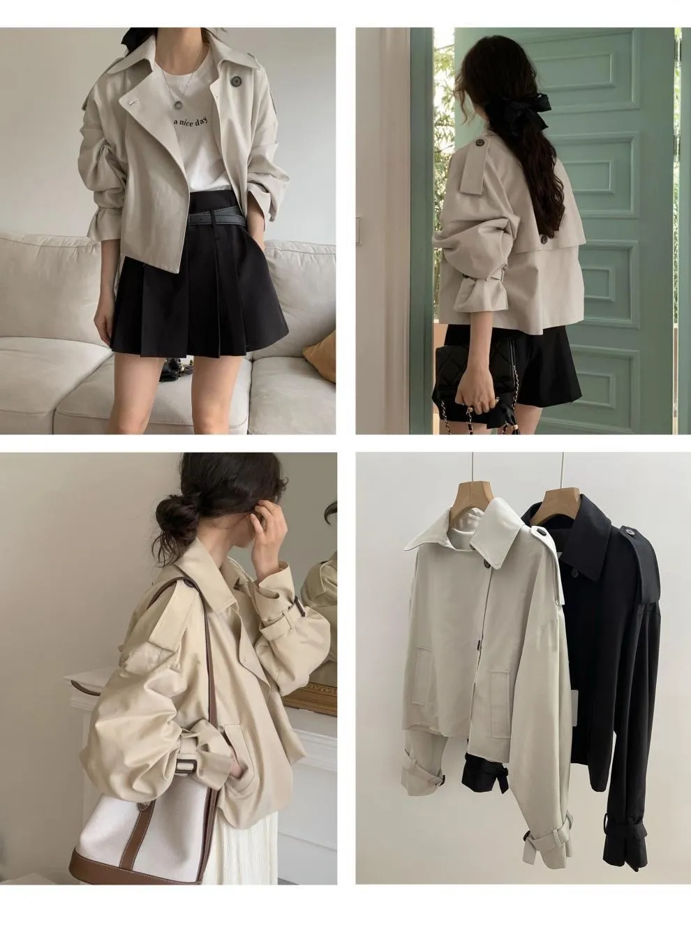 9月新品預購-秋季法式復古西裝領寬松短款風衣外套