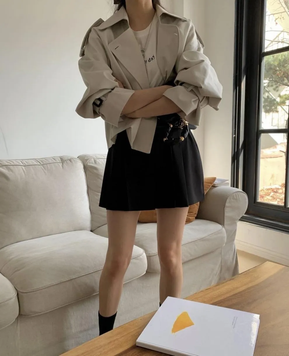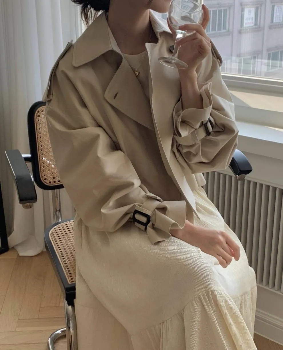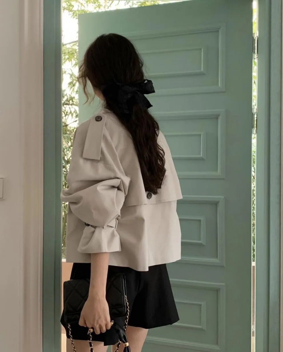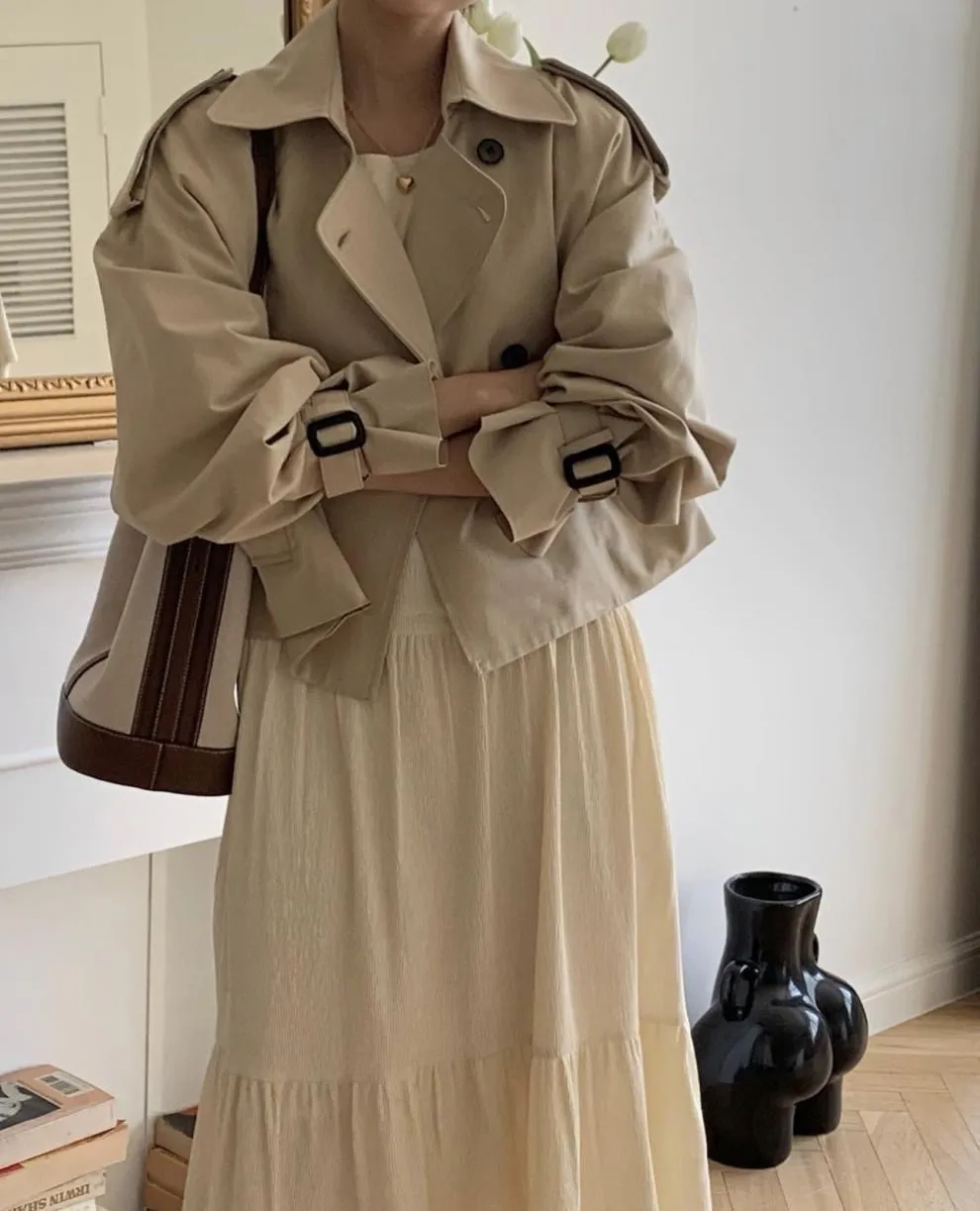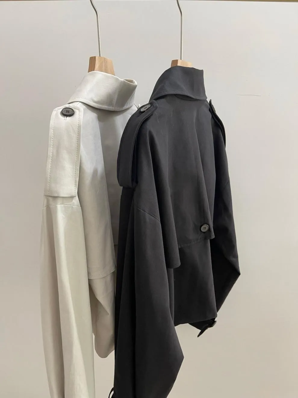 9月新品預購-秋季法式復古西裝領寬松短款風衣外套