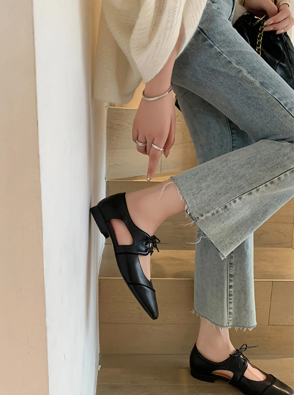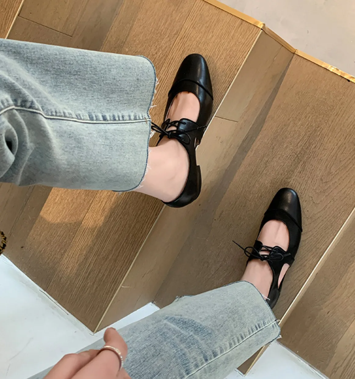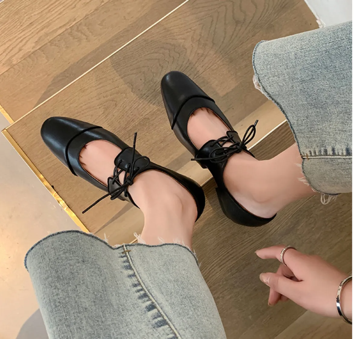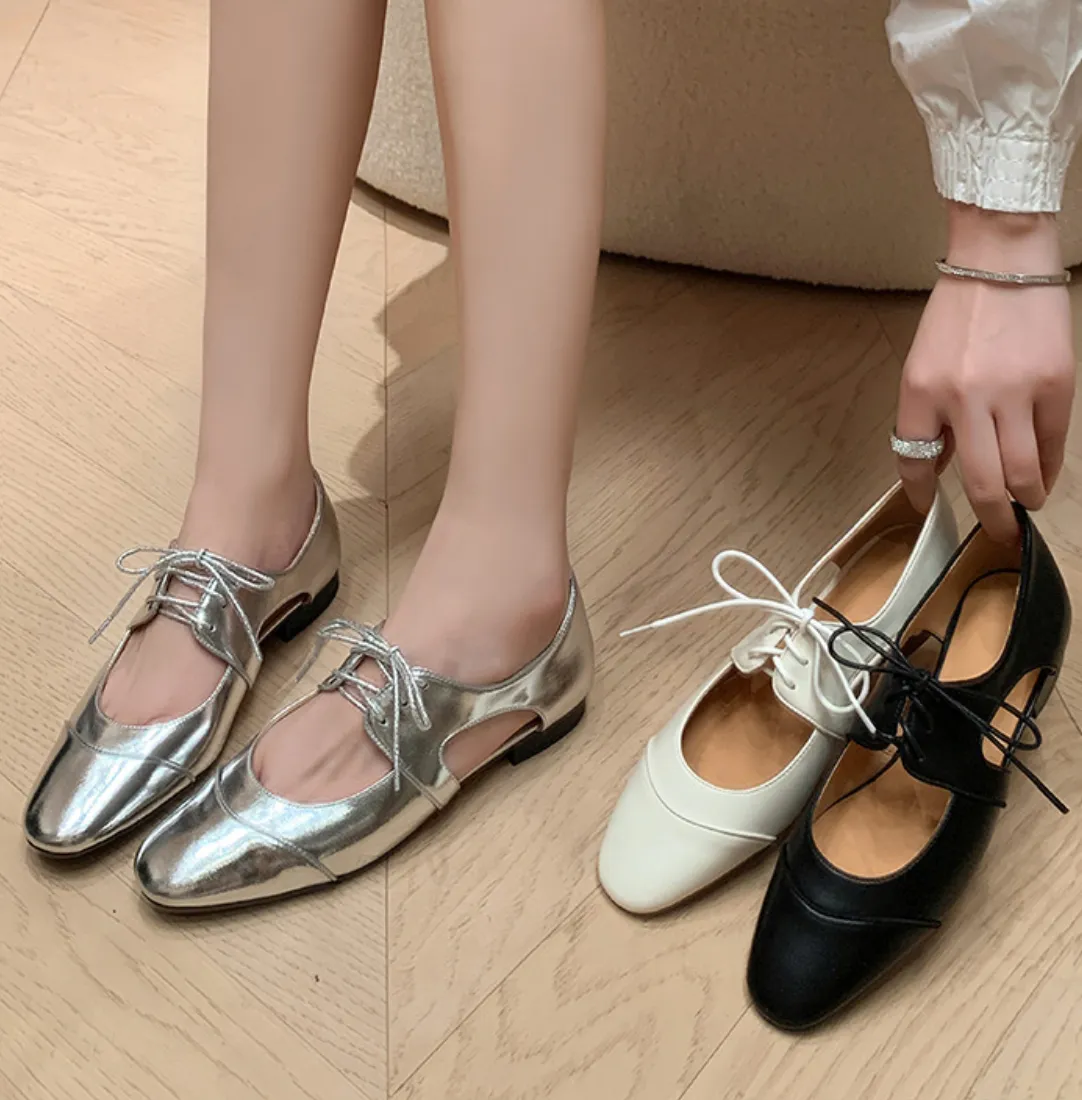 9月新品預購-設計款羊皮瑪莉珍低跟平底鞋