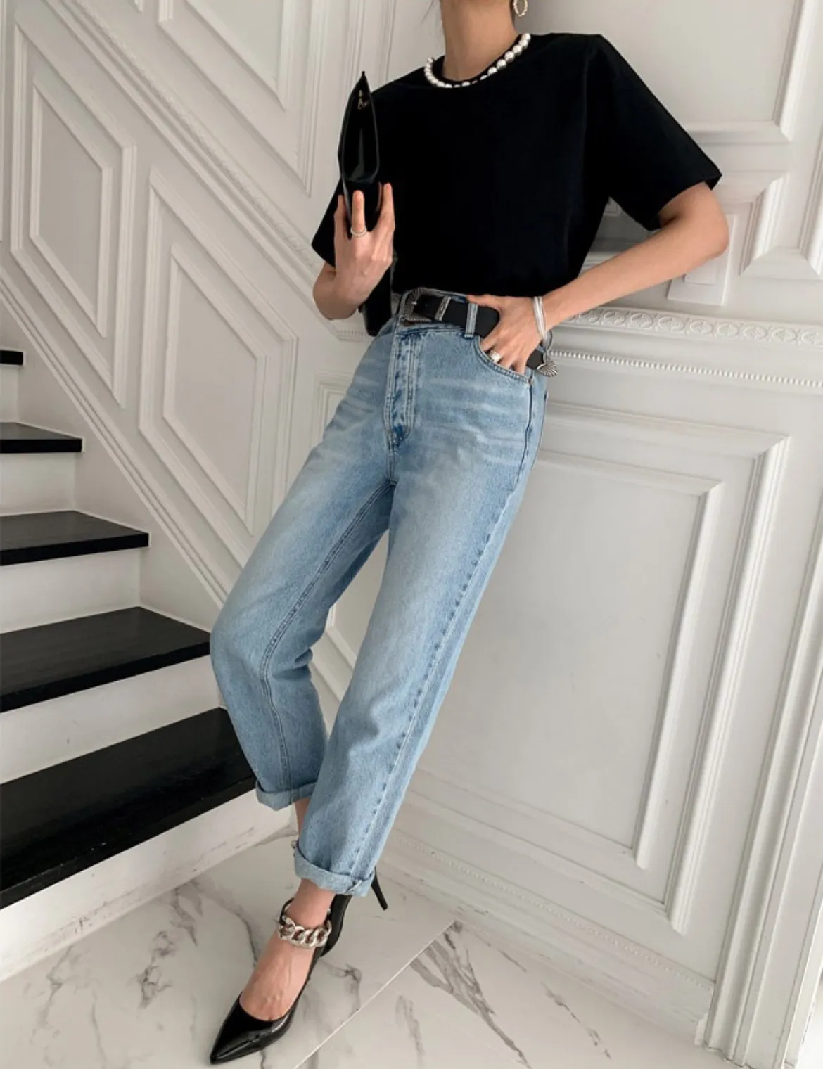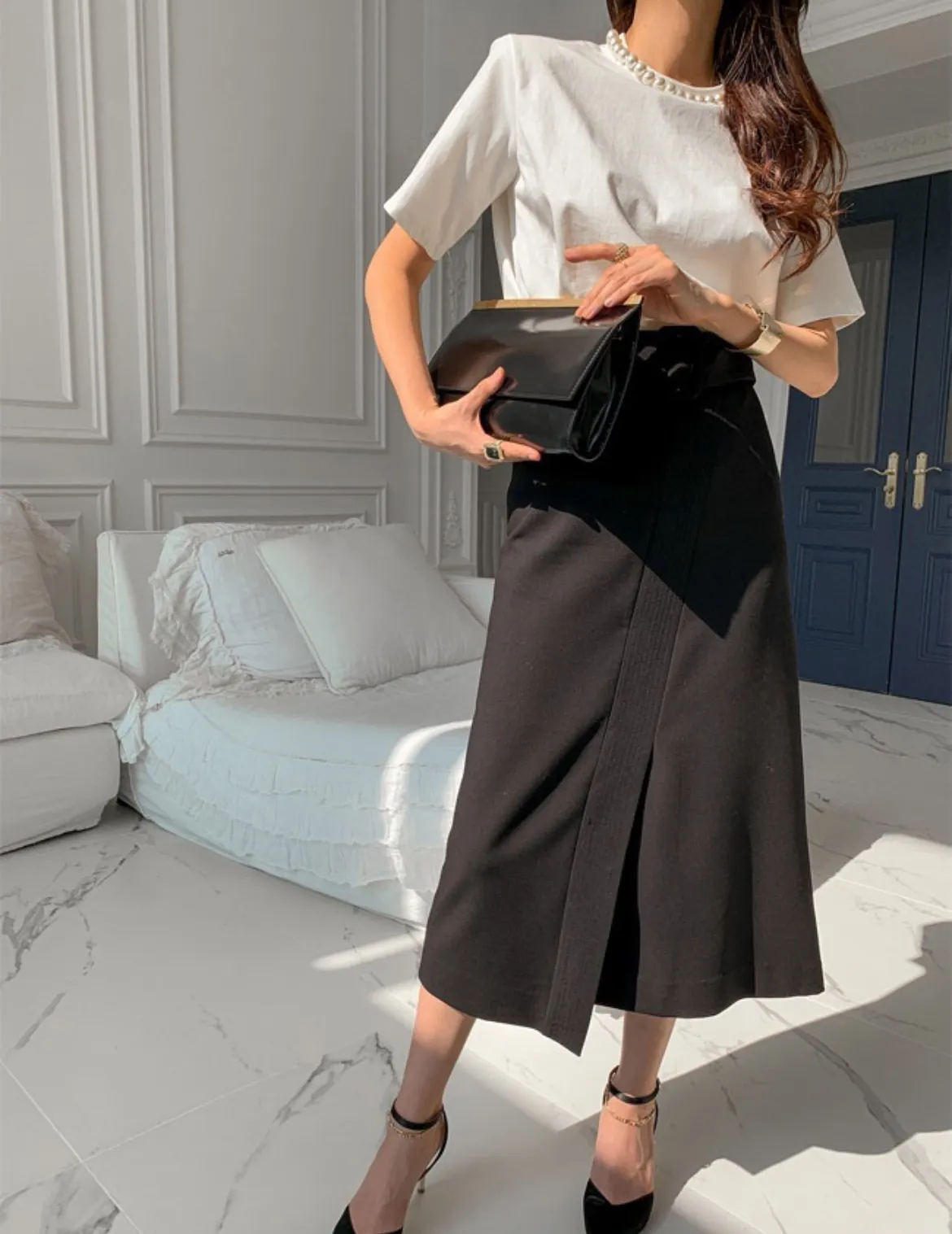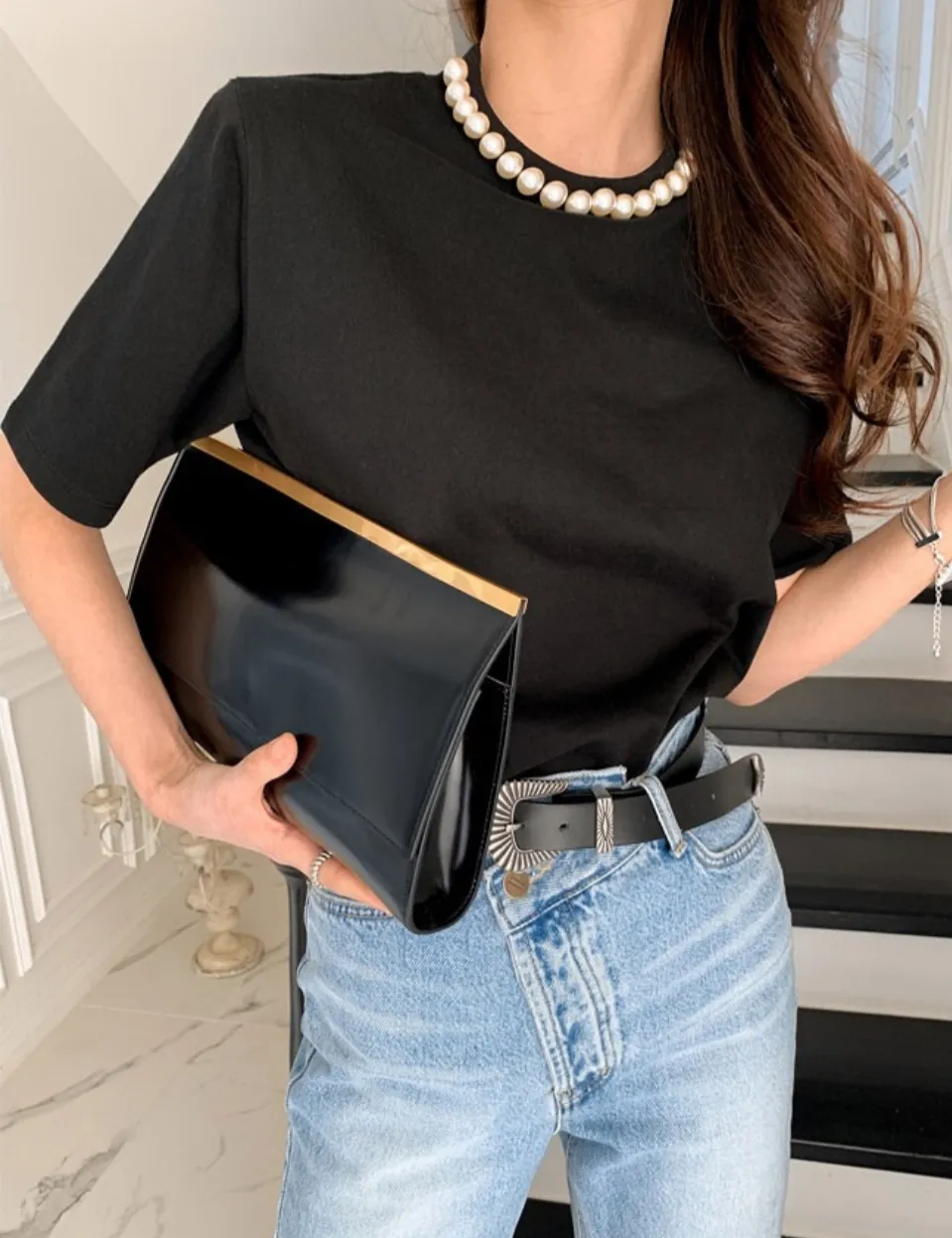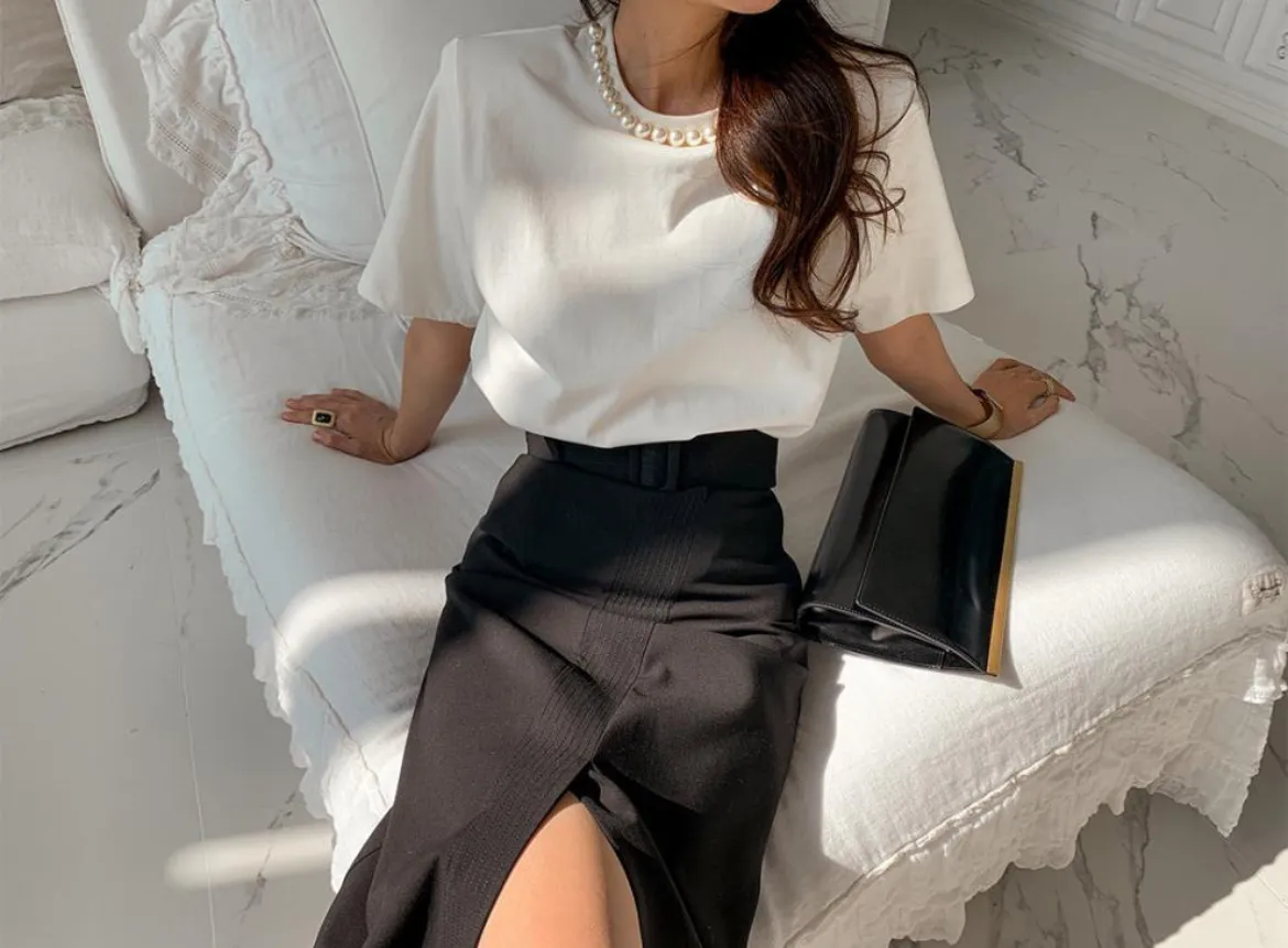 9月新品預購-珍珠領裝飾厚棉大彈力短袖