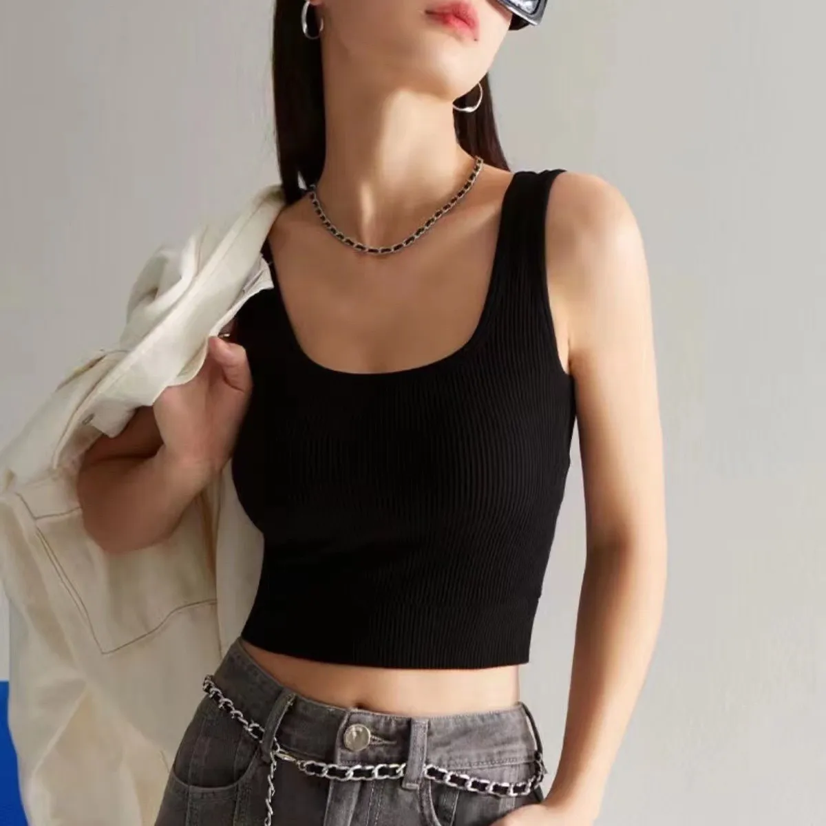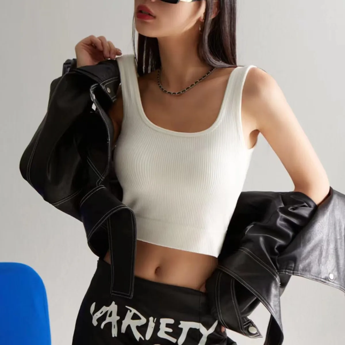 9月新品預購-時尚基礎內搭外穿帶襯墊短版小背心