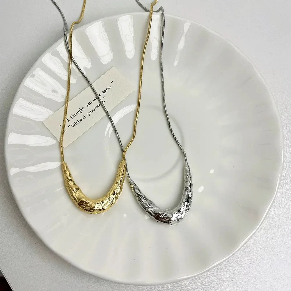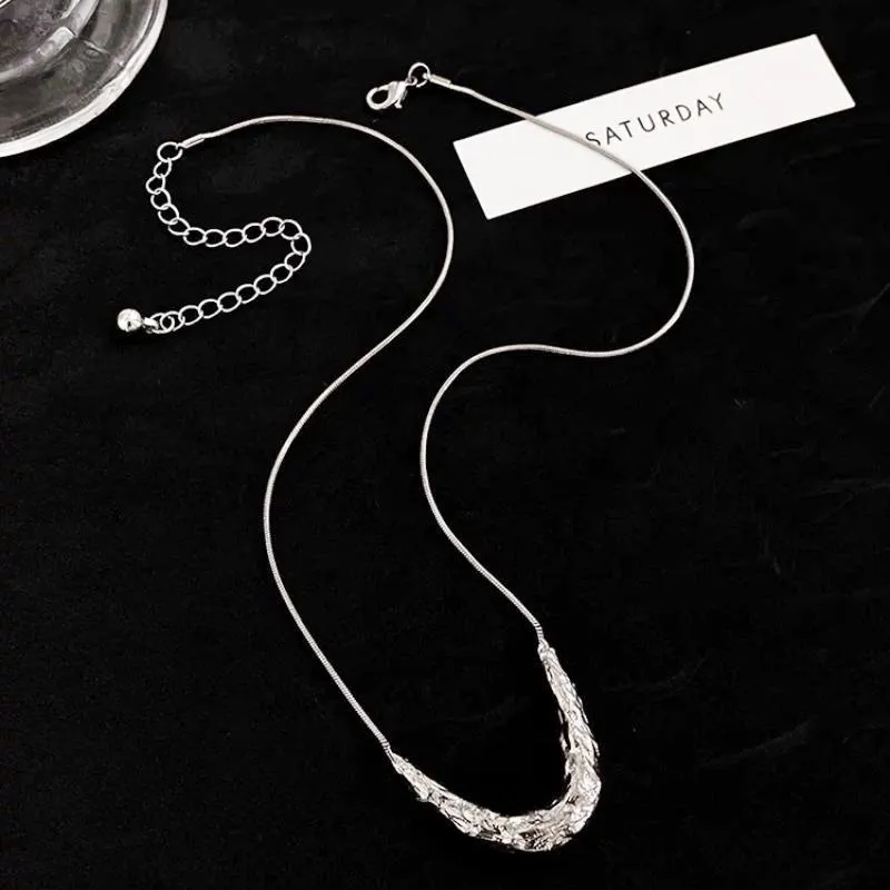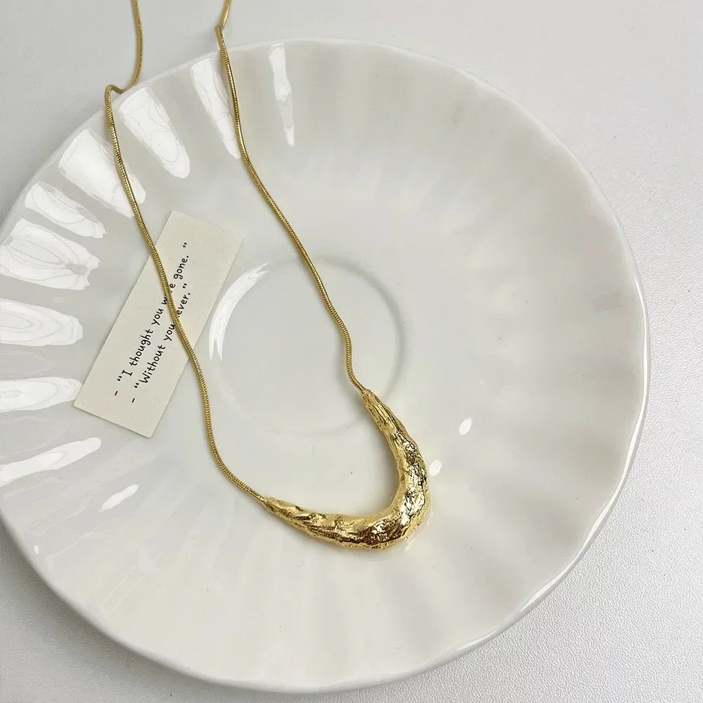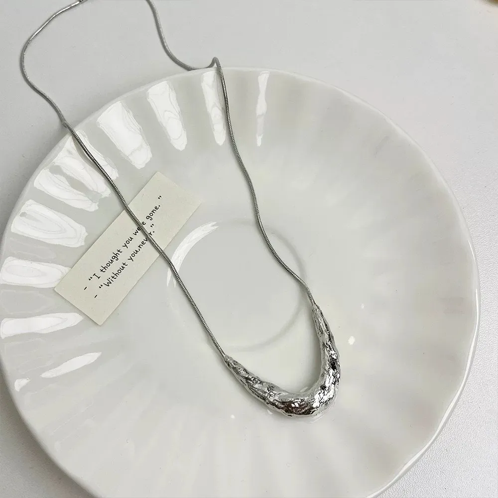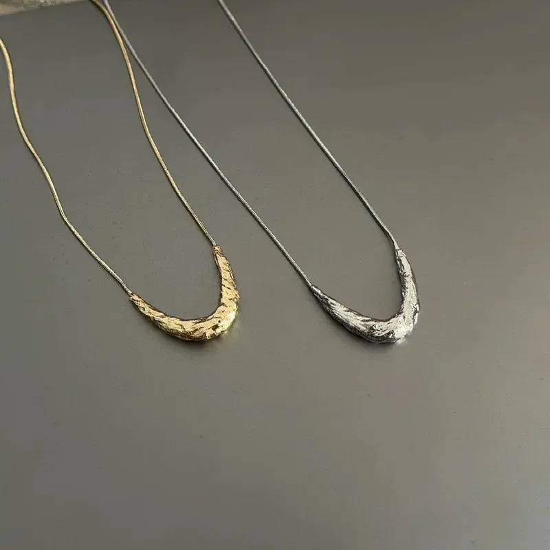 9月新品預購-設計師復古手工肌理熔岩微笑吊墜中長鏈