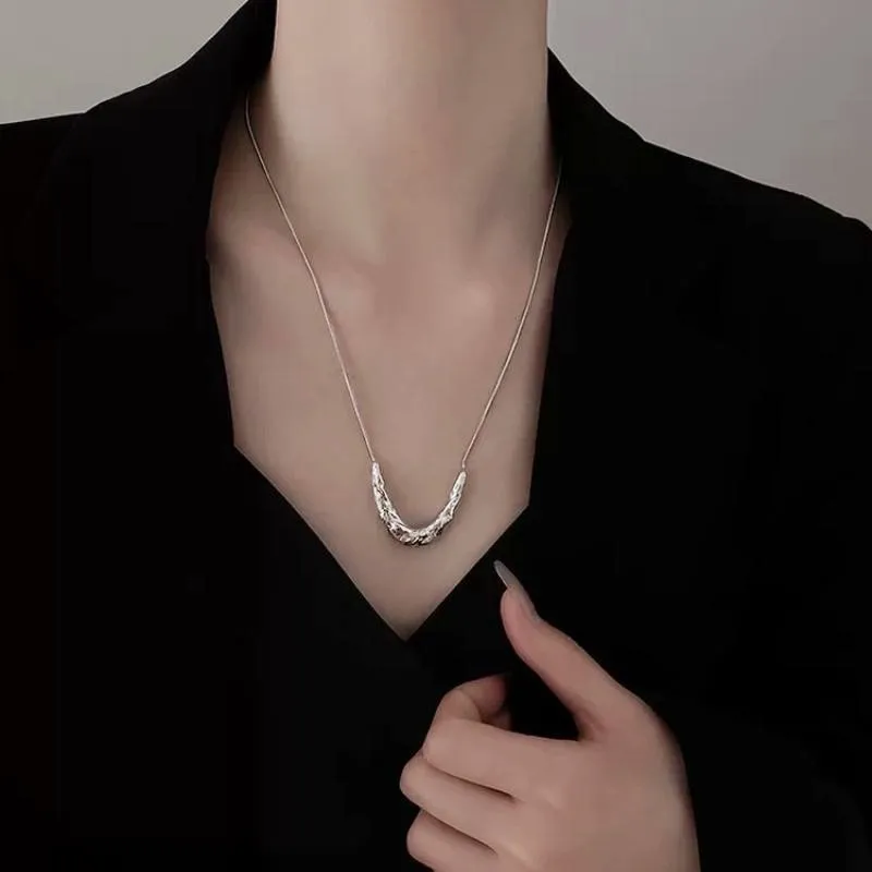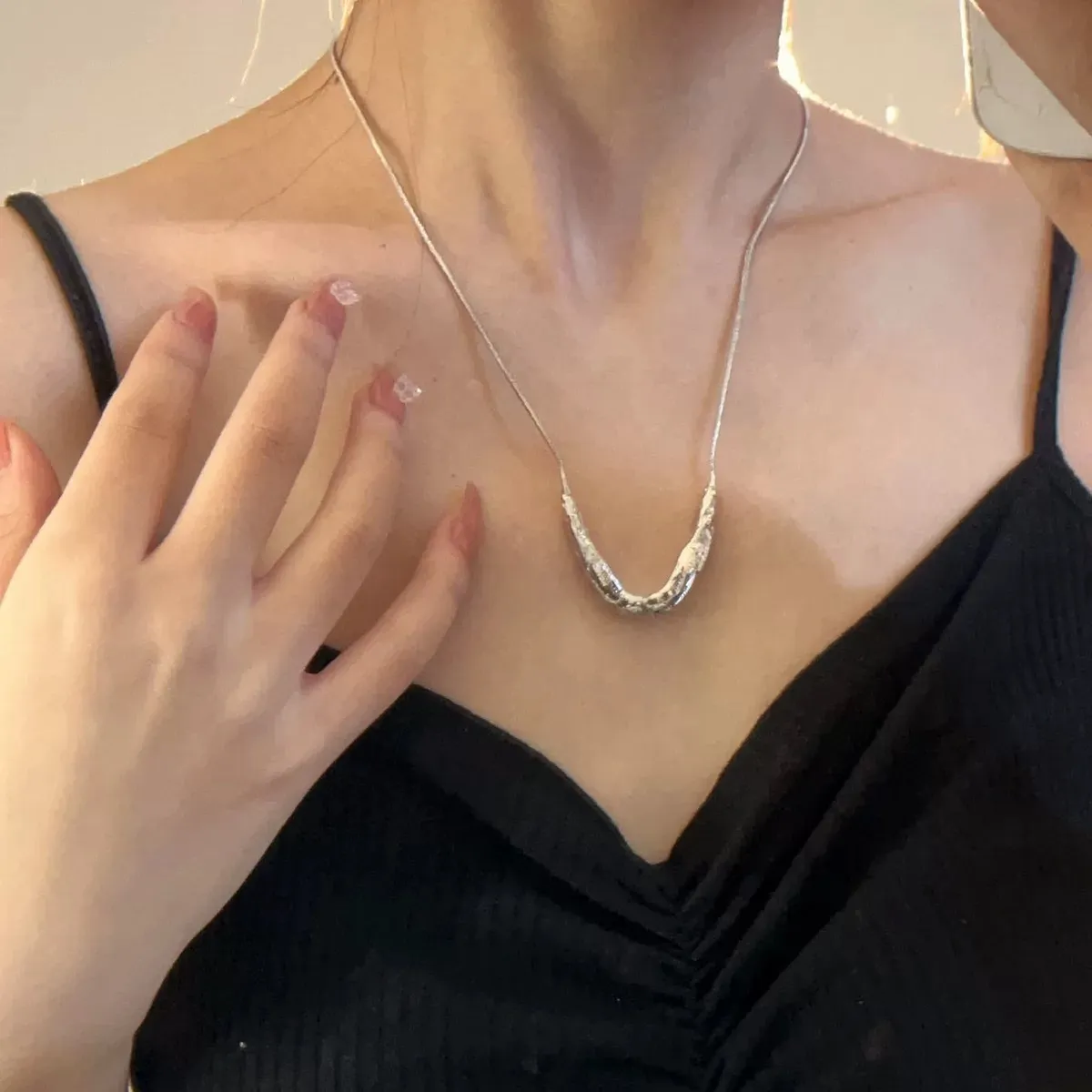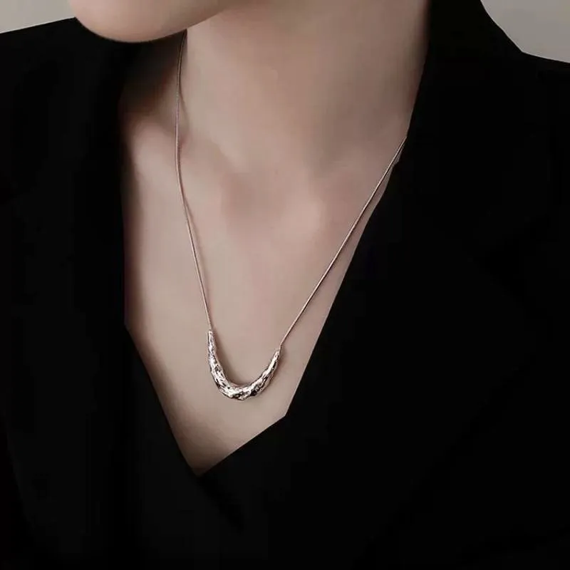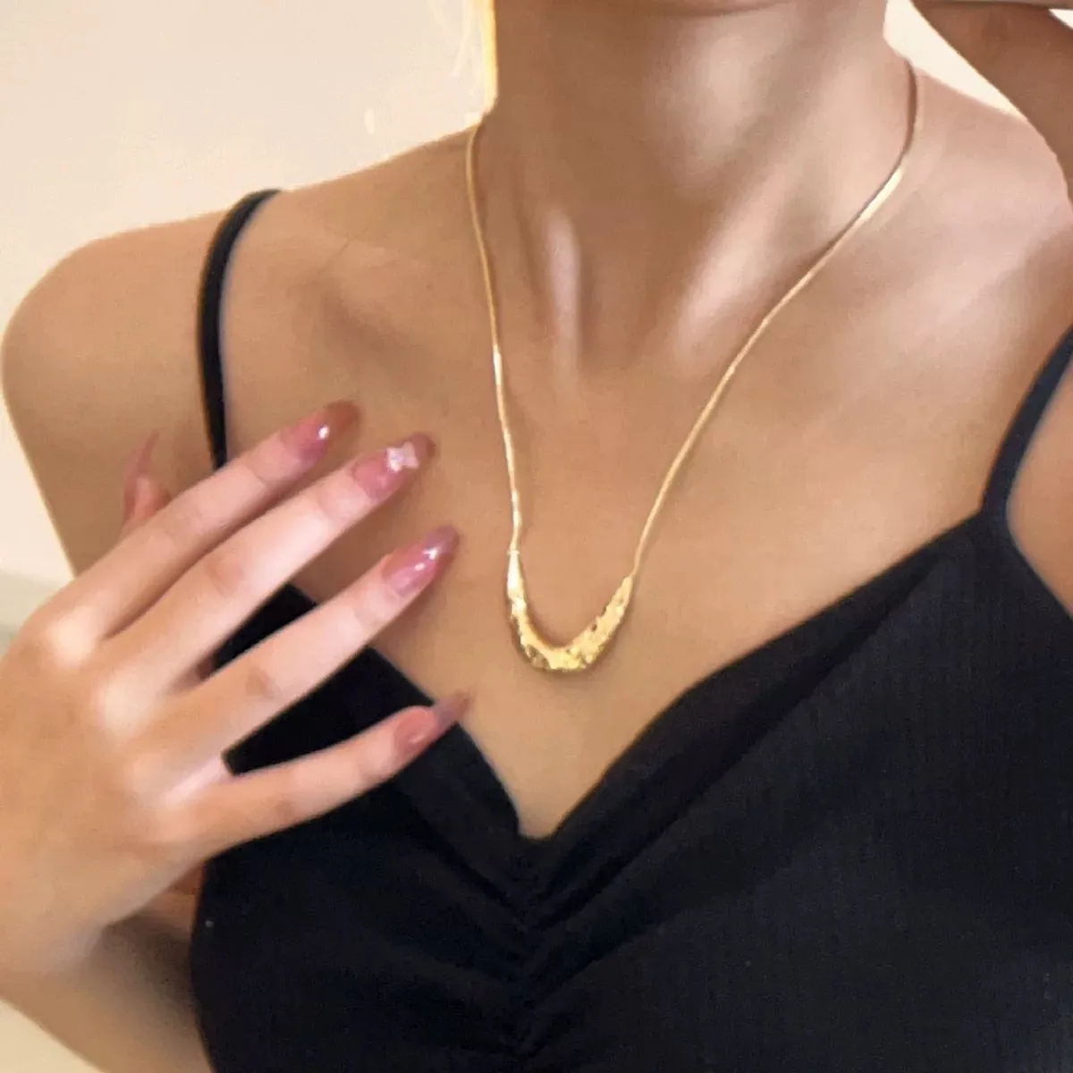 9月新品預購-設計師復古手工肌理熔岩微笑吊墜中長鏈