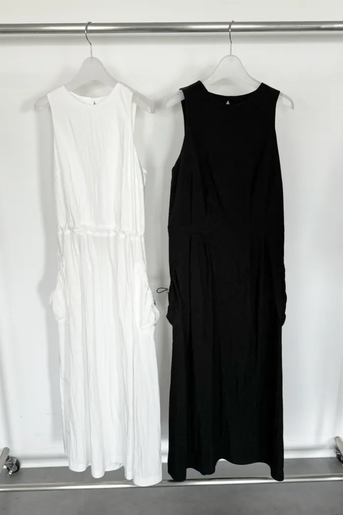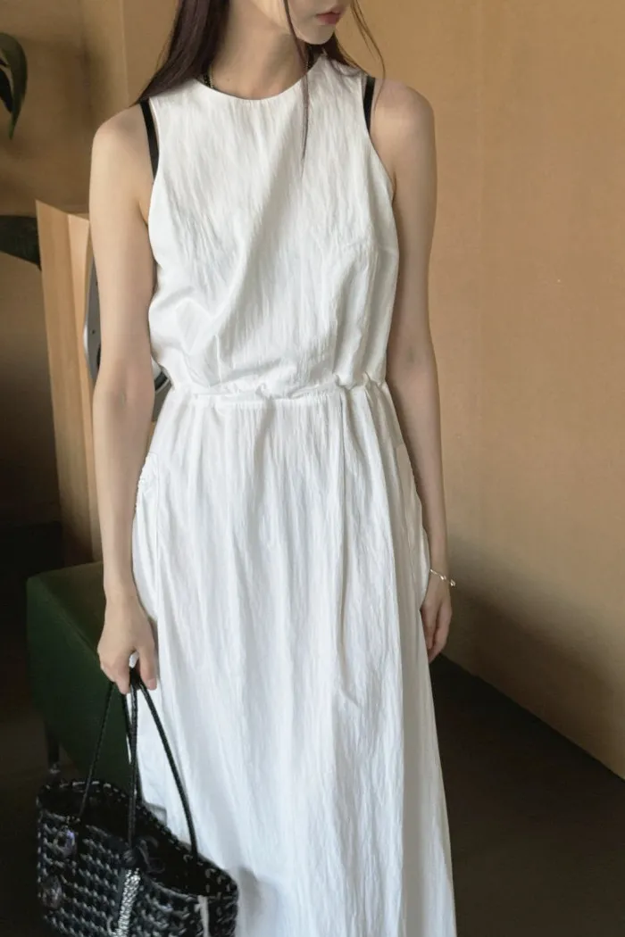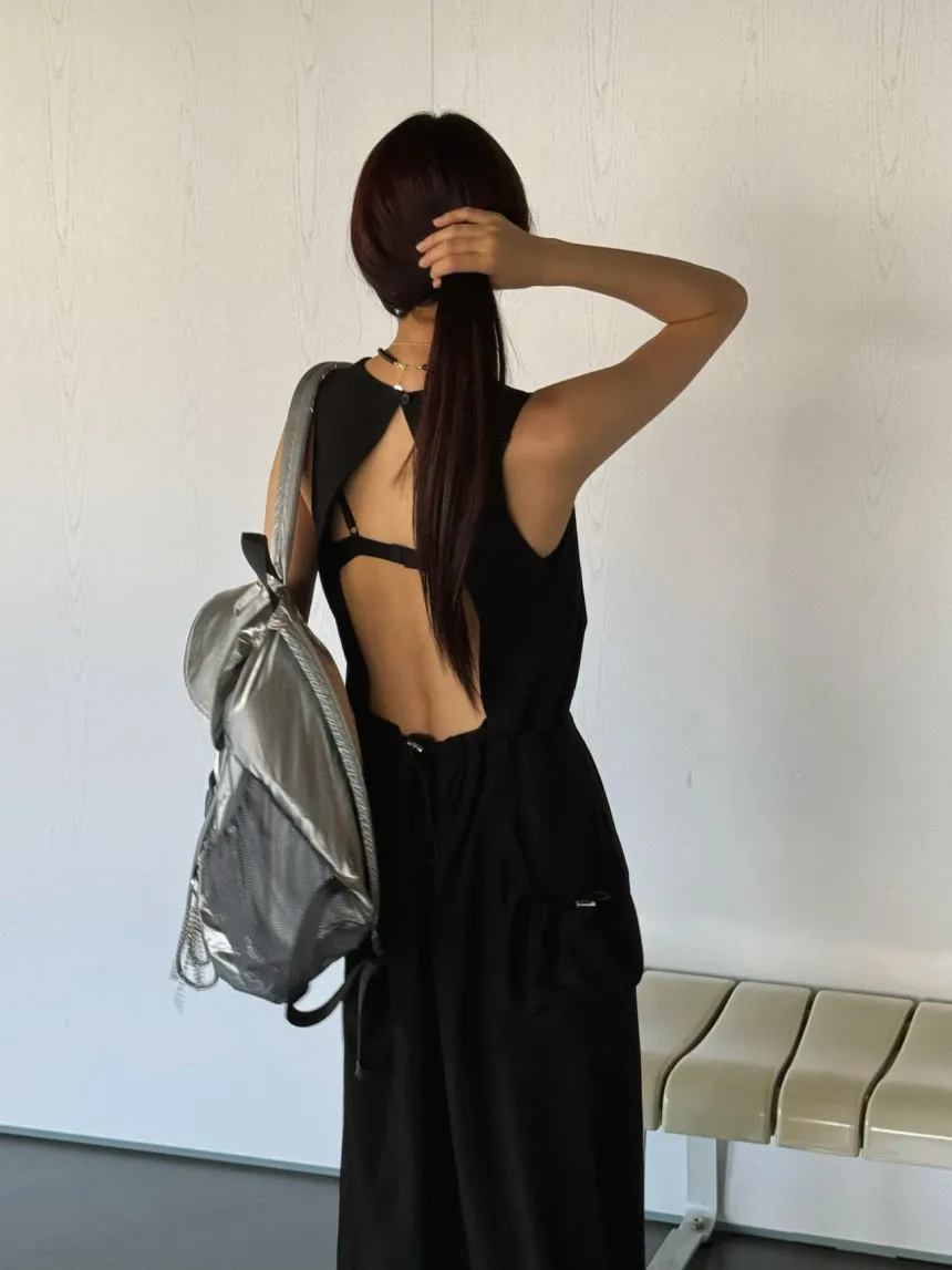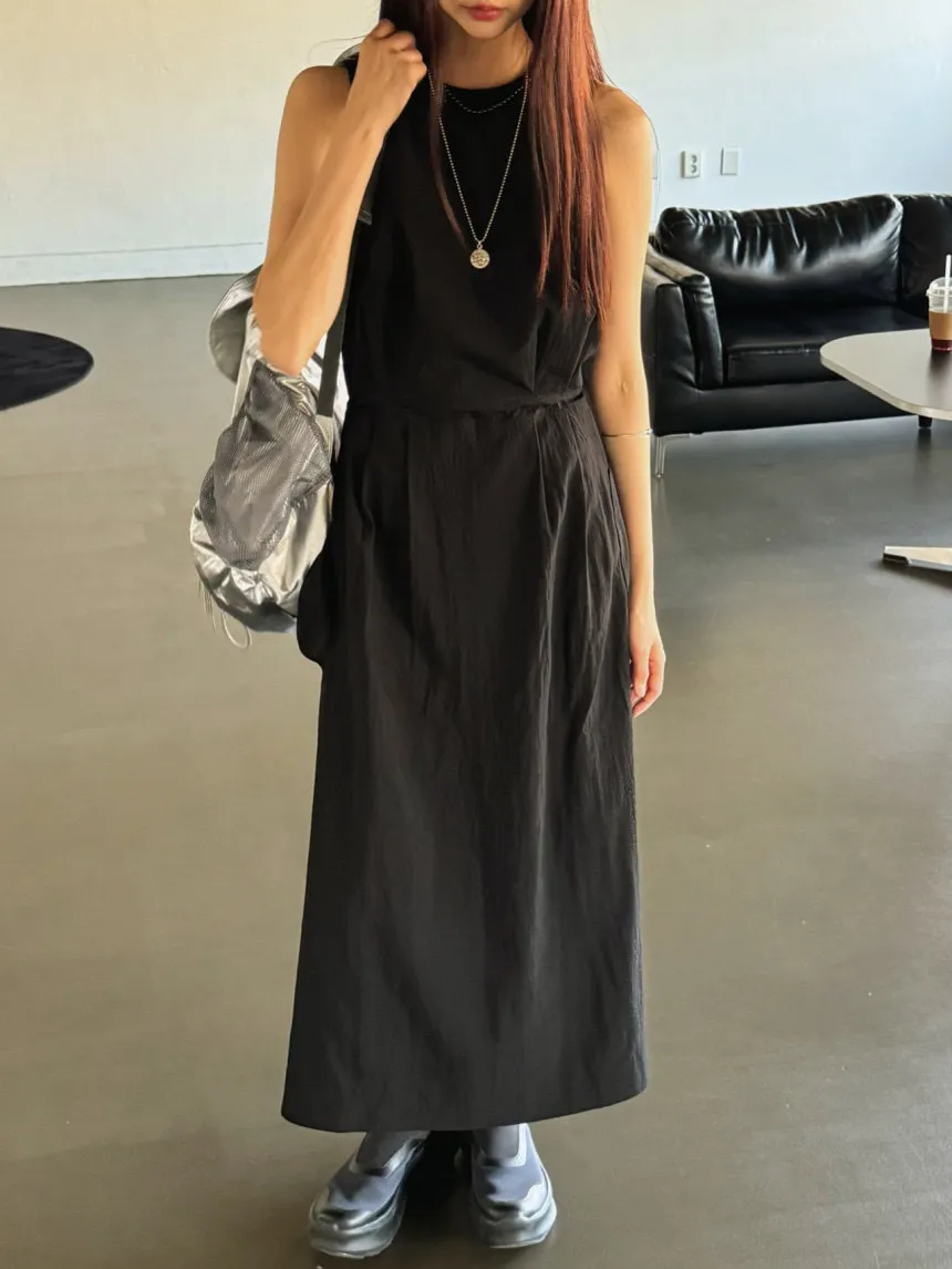 這款 露背綁帶背心裙 以簡約設計結合獨特細節,