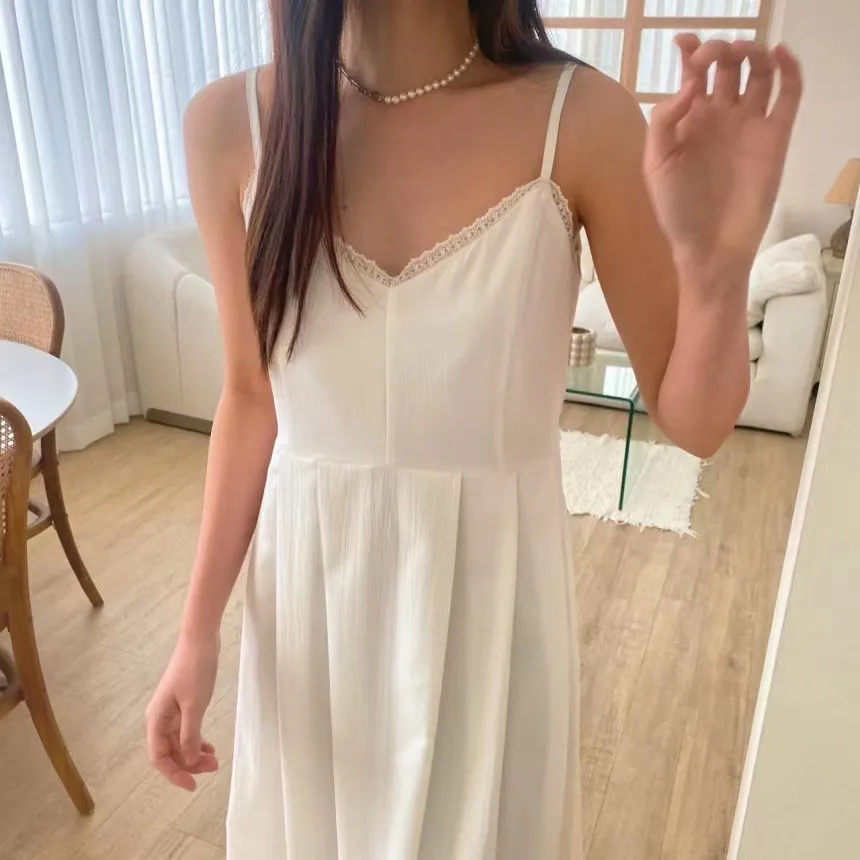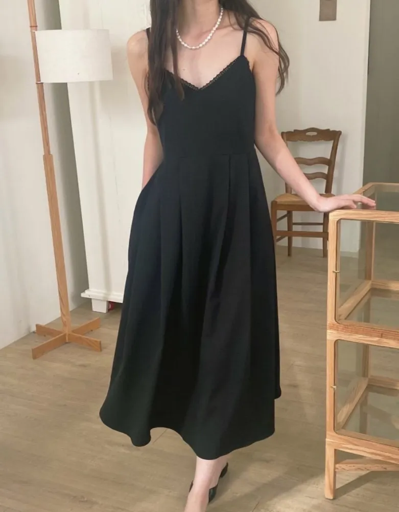 • 細肩帶設計:展現鎖骨與肩部線條,帶來優雅輕盈的法式感。