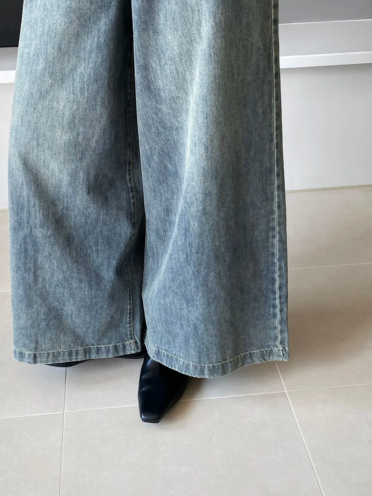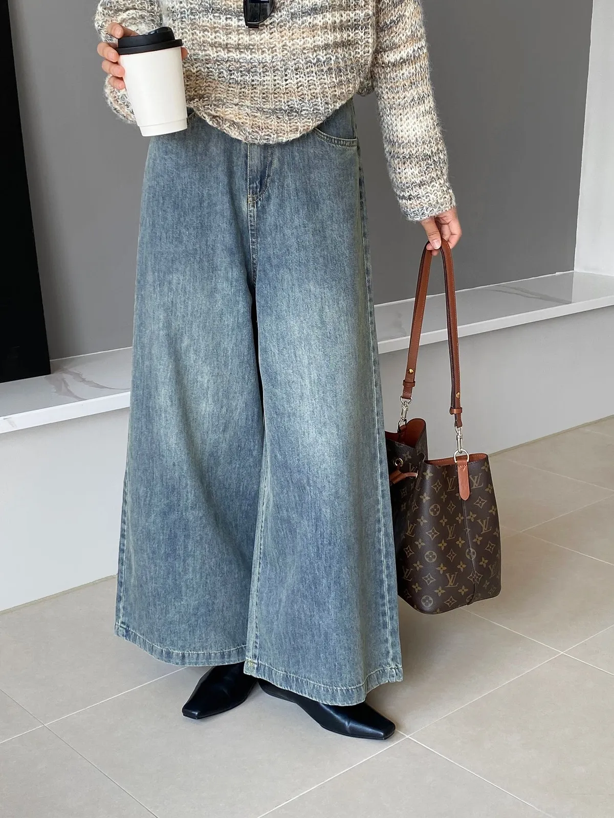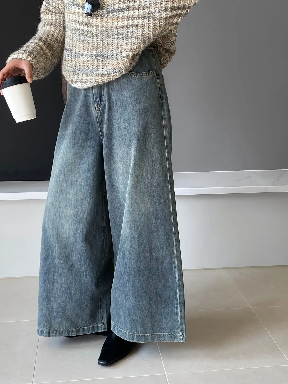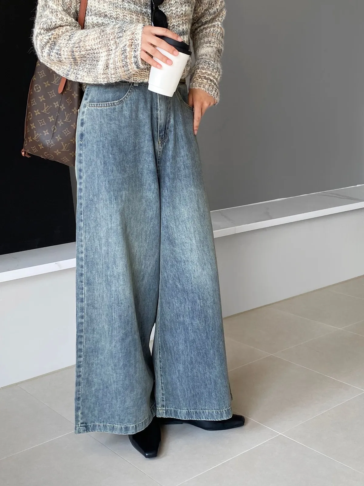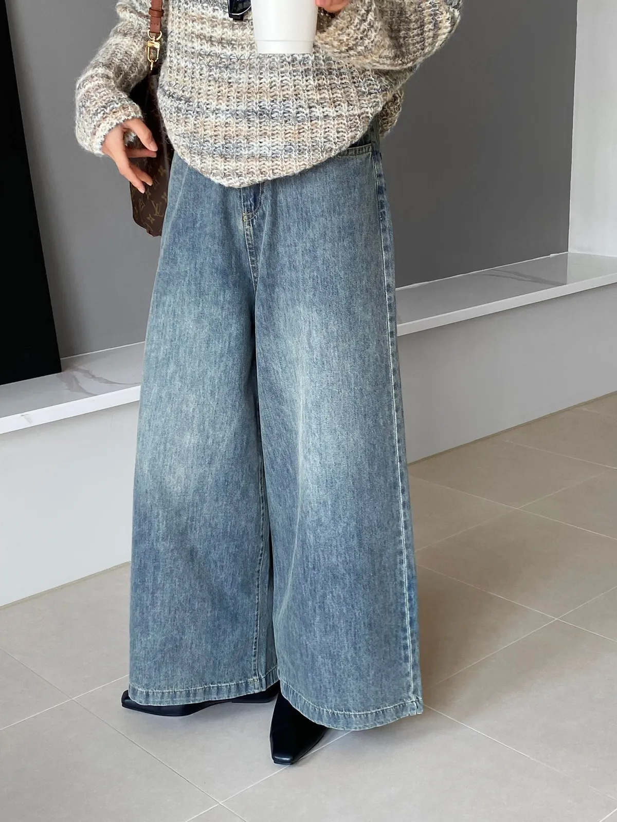 這款 韓版復古高腰闊腿牛仔褲,是衣櫃必備的百搭單品,