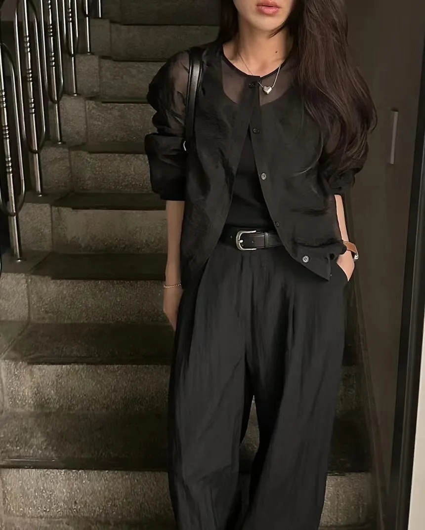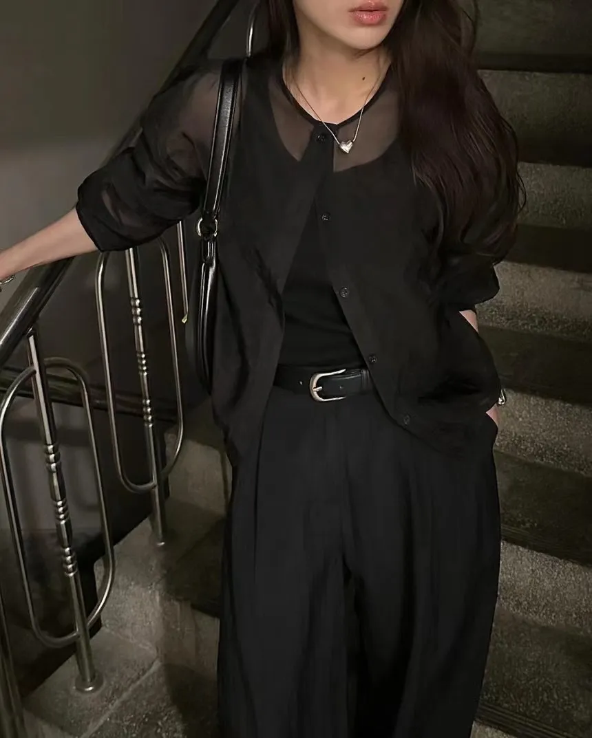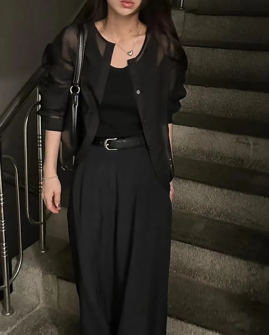 ✅ 風格特色: 內搭小可愛或細肩背心,讓透膚感更有層次,搭配西裝褲則展現洗鍊氣場