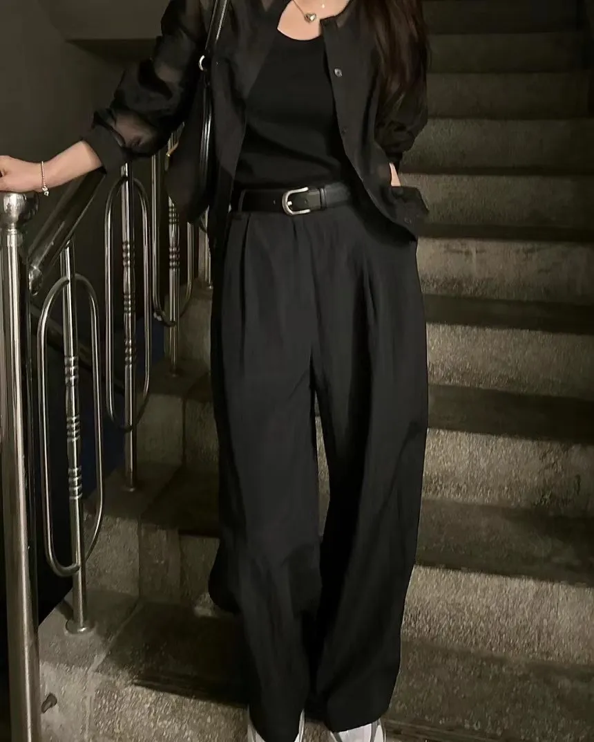 ✅ 搭配單品: 西裝寬褲 + 簡約尖頭鞋 + 小巧手提包